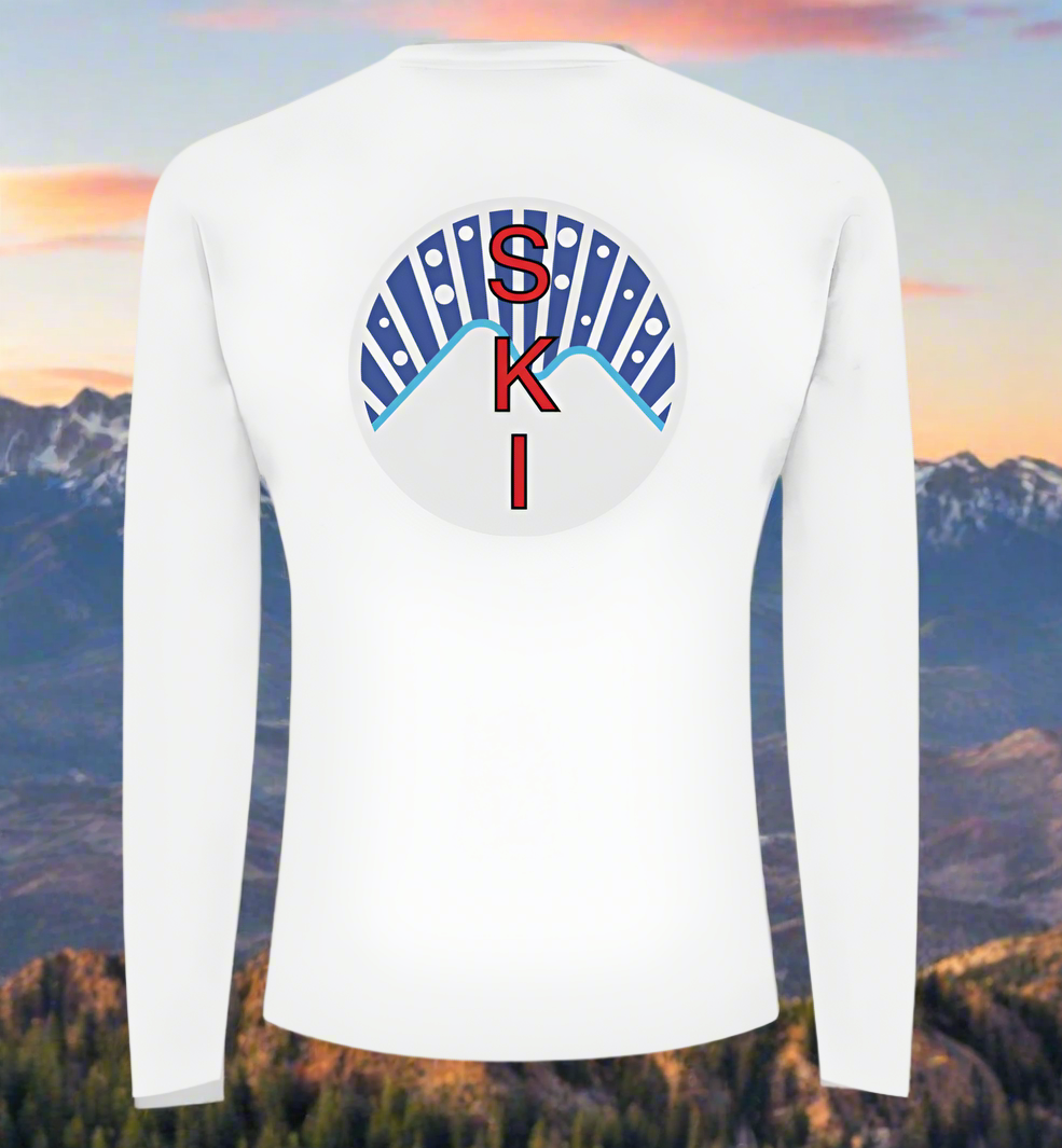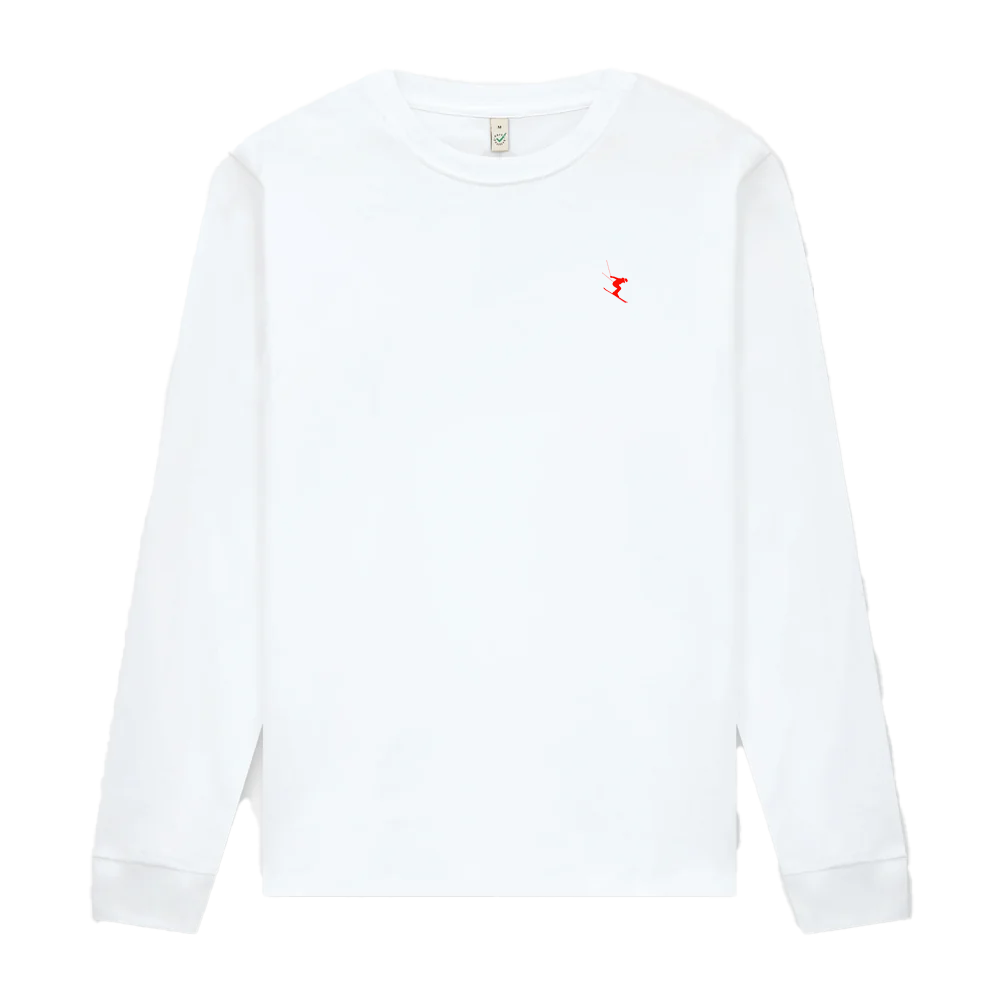 SKI Long Sleeve T-shirt in white (orange skier on front)