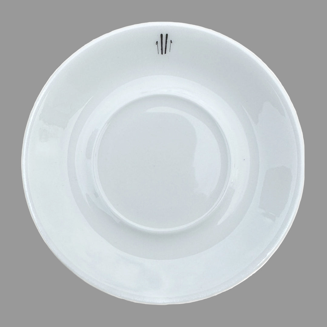 The white fine bone china espresso Saucer goes with the Touring espresso Cup.