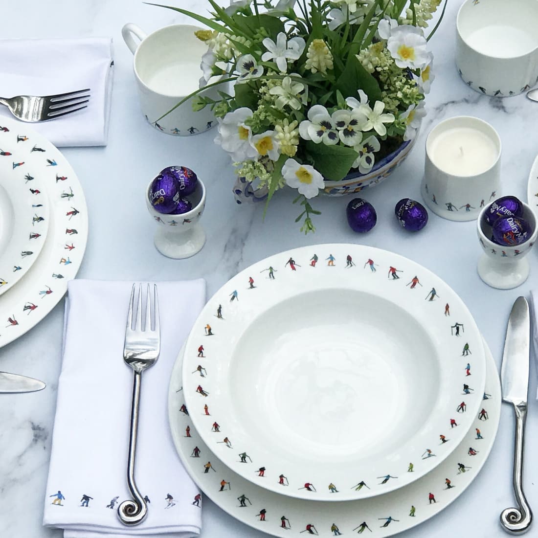 A gorgeous fine bone china Ski Chain Soup Bowl. Our signature skiers brighten up your lunchtime soup or perfect for an indulgent bowl of pasta.