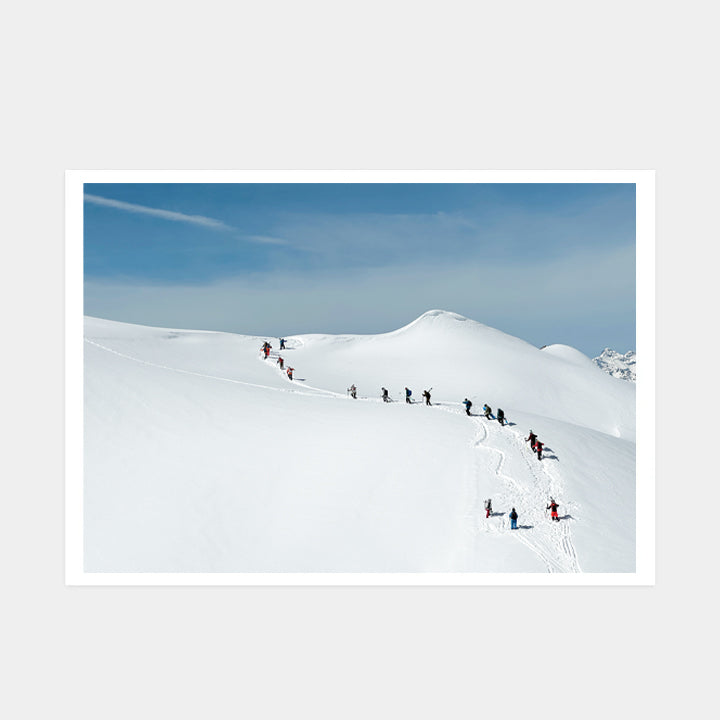 Off Piste Climb, Verbier by Natasha Durlacher, captures the the gentle hike of the mid morning off piste skiers, making the most of the fresh snow.
