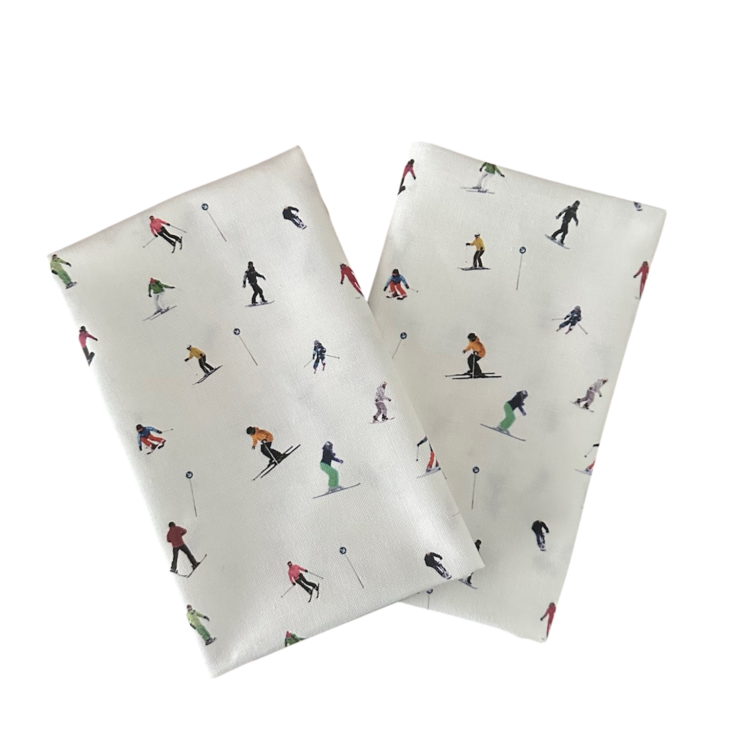The Marker Ski Tea Towel features joyful skiers and snowboarders navigating the slalom.