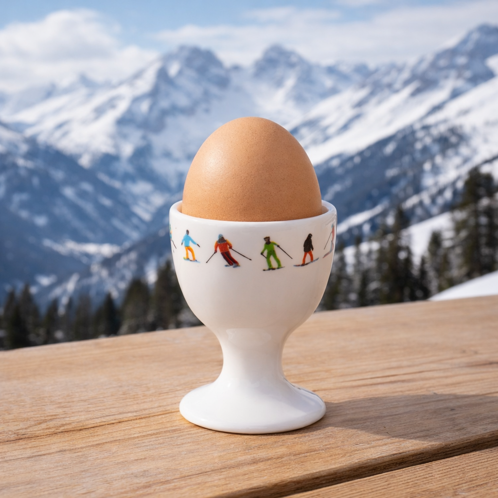 The cheeriest little egg cup. With joyful skiers racing round the rim, the Ski Chain Egg Cup is certain to brighten up your morning eggs.