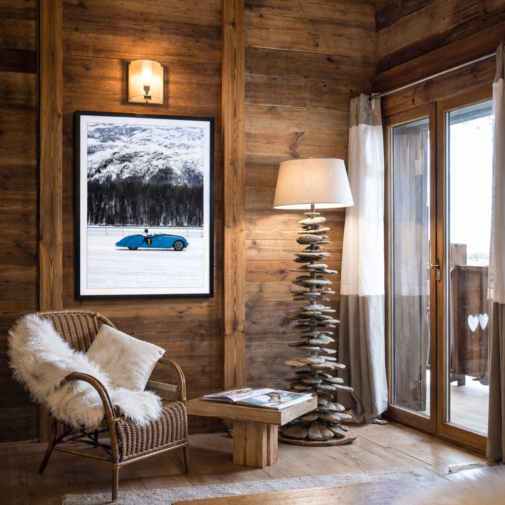 The Ice by Natasha Durlacher inspired by the race in St.Moritz and created into a retro style print of a beautiful vintage car.
